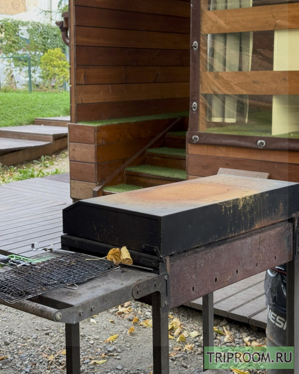 Есть место отдыха на улице на закрытой территории с мангалом (решетки, шампура) у каждого домика свой.